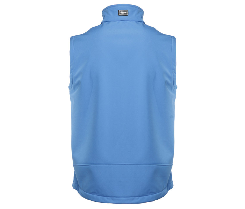 Softshell-Weste, sehr leicht. 3-schichtiger Stoff mit atmungsaktiver Membran befestigt (800g) und wasserdicht (3000-5000mm). 2 Reißverschlusstaschen. Gummiband unten mit Stoppern. Innenmaterial aus Microfleece.