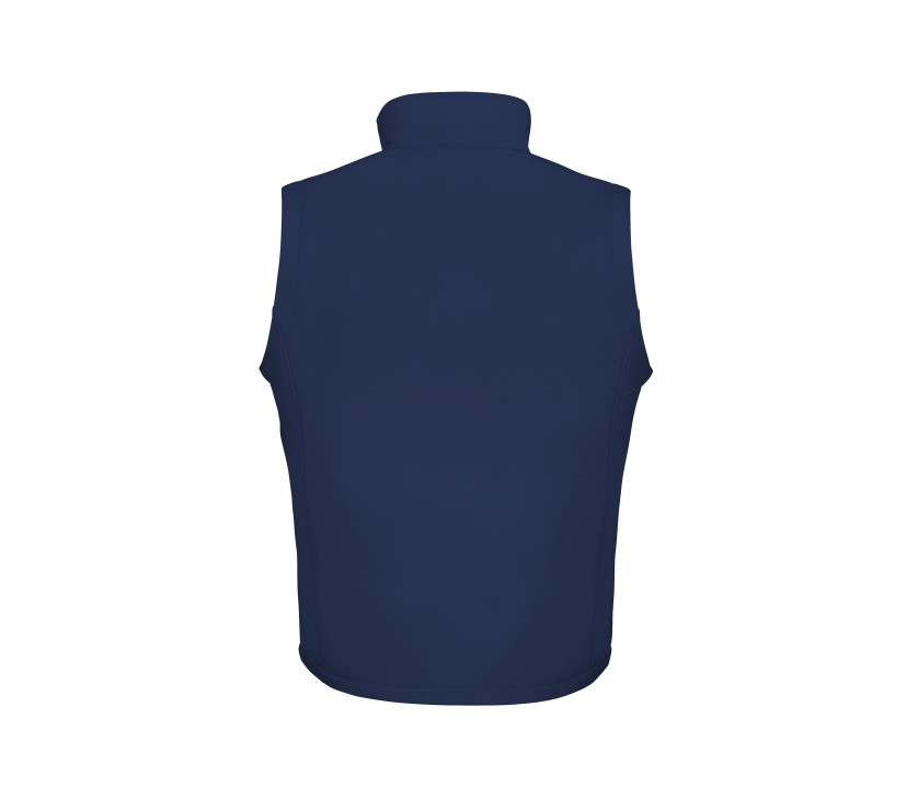 Bedruckbare Softshell-Bodywarmer für Herren - 2-lagig. Durchgehender Reißverschluss. 2 Reißverschlusstaschen. Kinnschutz.