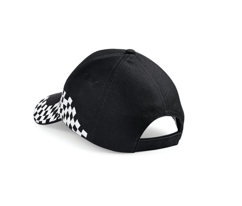 Stickerei Schachbrettmuster. Verschluss per Rip-Strip®. Perfekt geeignet für Siebdruck und Stickerei. Kopfumfang: 58 cm. Der Schirm der Mütze besteht aus recyceltem Polyethylen, einem nachhaltigen, leichten und flexiblen Material.