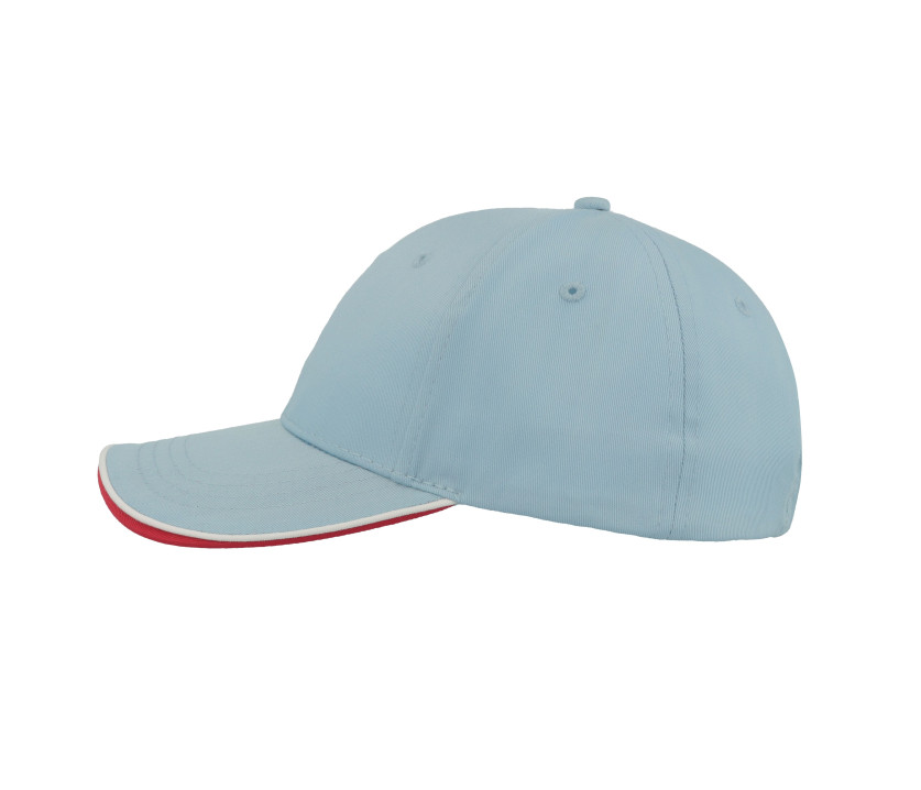 6 Panels. Klettverschluss. Paspel an Schild und Verstellband. Kontrastiertes und vorgeformtes Schild. Abgesteppte Ösen. 4 Nähte am Schild. Kopfumfang: 58cm. Schirm mit Kunststoffkernstruktur gefertigt.