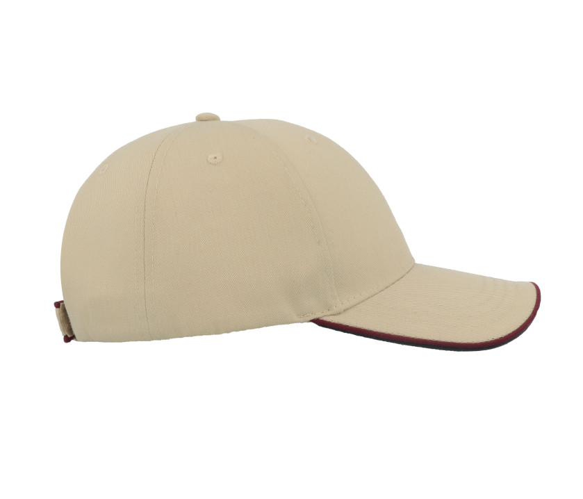 6 Panels. Klettverschluss. Paspel an Schild und Verstellband. Kontrastiertes und vorgeformtes Schild. Abgesteppte Ösen. 4 Nähte am Schild. Kopfumfang: 58cm. Schirm mit Kunststoffkernstruktur gefertigt.