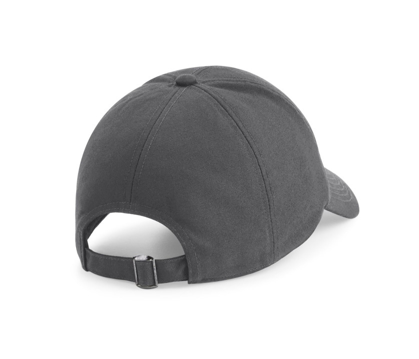 6-Panel-Cap aus Bio-Baumwolle - 6 Panels. Ablösbares Etikett. Mit Schnalle verstellbarer Verschluss hinten.