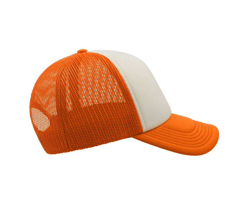 5 Panels. Verschluss mit PVC-Nieten. Netzgewebe hinten und an den Seiten. Vorgeformtes Schild. Vorderseite und Schild gepolstert. 6 Nähte am Schild. Perfekt für Siebdruck, Stickerei oder Sublimierung (Polyesterpaneel). Kopfumfang: 58cm. Schirm mit Kunststoffkernstruktur gefertigt.