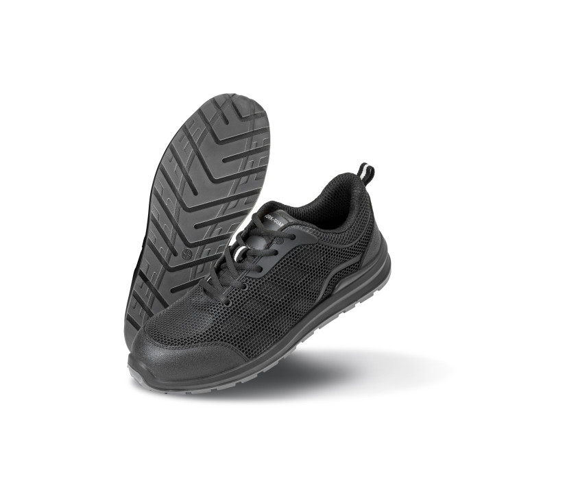 Leichte Halbschuhe. Außenstoff und Fütterung aus atmungsaktivem Maschengewebe. Mischmodell. Gepolsterte Lasche. Energieabsorption im Absatz. Schürfschutz aus geformtem PU. SRA rutschsicher. Sicherheitskappe aus Stahl. Ersatz-Innensohle. Ölbeständig. Zertifiziert CE EN 20345:2011 SRA SB. Achtung, Größe 45 existiert nicht.