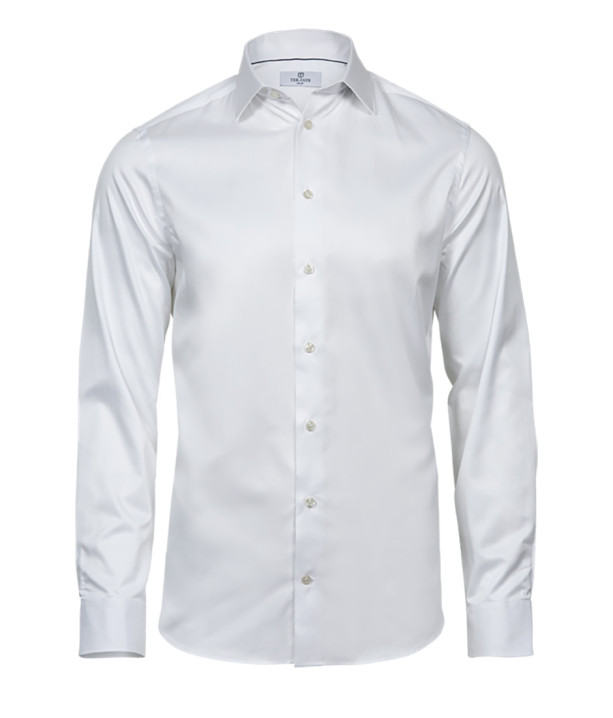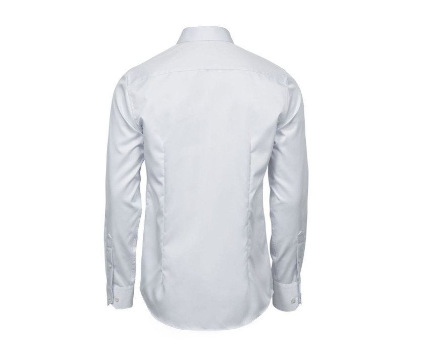Italienischer Kragen. Anliegende Passform. Kragen und Bündchen nahtgeschweißt. Rückenpasse. Abnäher am Rücken. Abgerundeter Saum. Pflegeleicht.