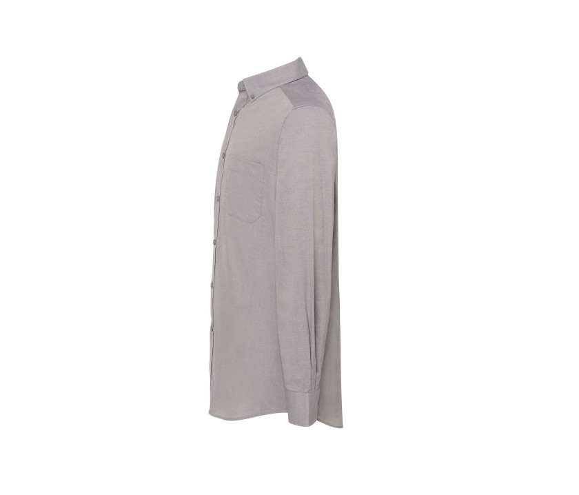 Langärmeliges Hemd. Geknöpfter Kragen. Tasche linke Seite. Farblich passende Knöpfe.