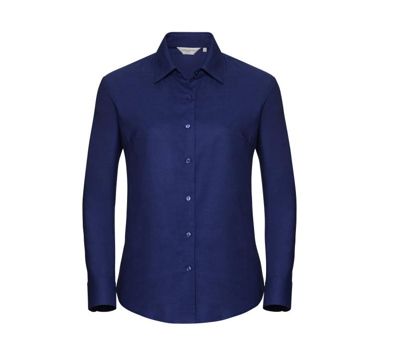 Oxford-Hemd aus 70 % Baumwolle/30 % Polyester. Pflegeleicht, minimales Bügeln. Verstellbare abgerundete Ärmelbündchen mit 2 Knöpfen. Ohne Tasche. Abnäher an Brust und Rücken für eine weibliche Passform.