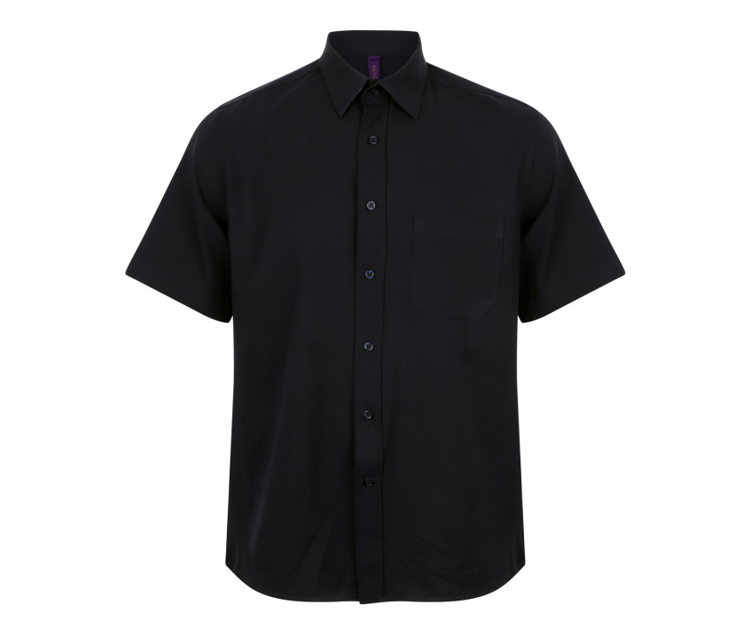 Kurzärmeliges Hemd. Schnell trocknend. Perlmuttknöpfe. Antibakteriell. Anti-UV. Kragen ohne Knöpfe. Pflegeleicht.