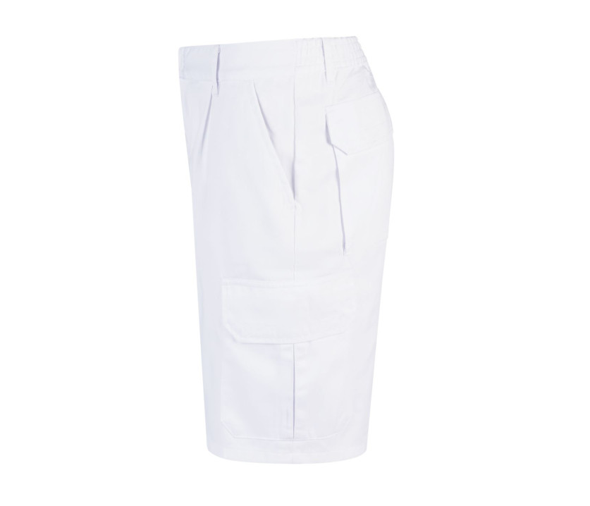 Reißverschluss mit Knopf. Elastischer Bund. Sicherheitsnaht hinten. Abnäher vorne. Sechs Taschen: 2 Seitentaschen. 2 Taschen auf den Oberschenkeln mit Verschlussklappe und Klettverschluss. 2 Gesäßtaschen mit Klappe und Klettverschluss.
