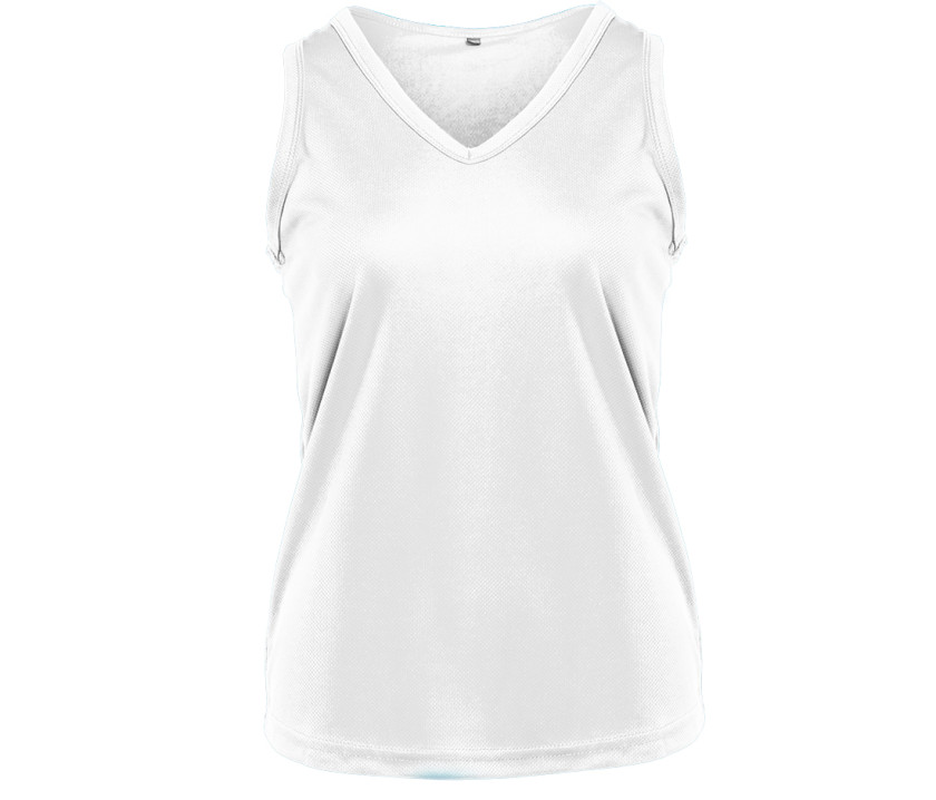 Damen-Sport-Tanktop. Gedrucktes Etikett für besseren Komfort. Anliegende Passform. Leicht und atmungsaktiv. Kragen und Armausschnitt wie ärmelloses Shirt. Verfügbar in 9 Farbtönen. Ringerrücken.