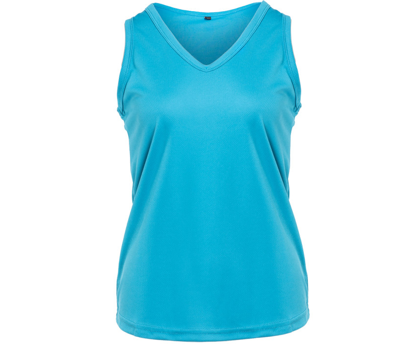 Damen-Sport-Tanktop. Gedrucktes Etikett für besseren Komfort. Anliegende Passform. Leicht und atmungsaktiv. Kragen und Armausschnitt wie ärmelloses Shirt. Verfügbar in 9 Farbtönen. Ringerrücken.