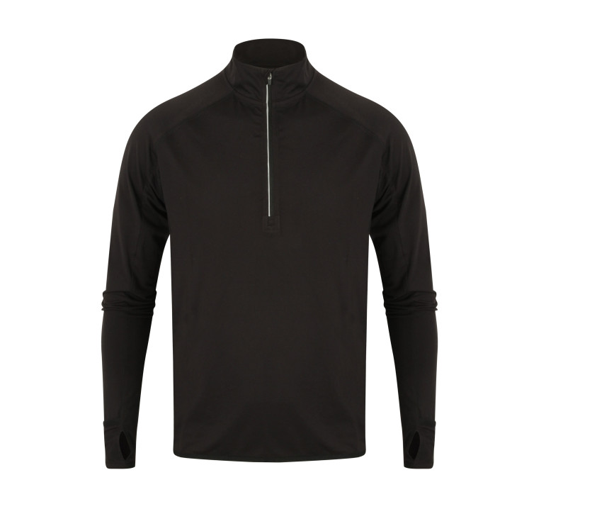 1/4 Reißverschluss reflektierend. Lange Raglanärmel. Ablösbares Etikett. Handschutz. Schlüsseltasche am Rücken. Zugriff für Ohrhörer.