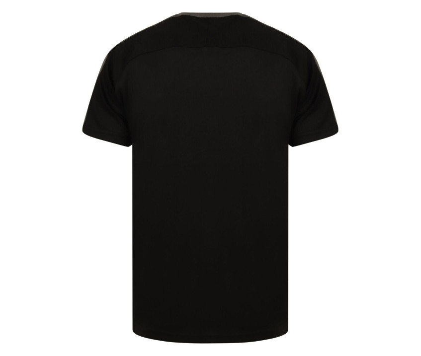Raglanärmel. Kragen in 2 Teilen. Atmungsaktiv. Kontraststreifen Schultern und Ärmel von 5 cm. Reine Nähte ohne Steppnähte. Doppelnähte Ärmel und Saum.