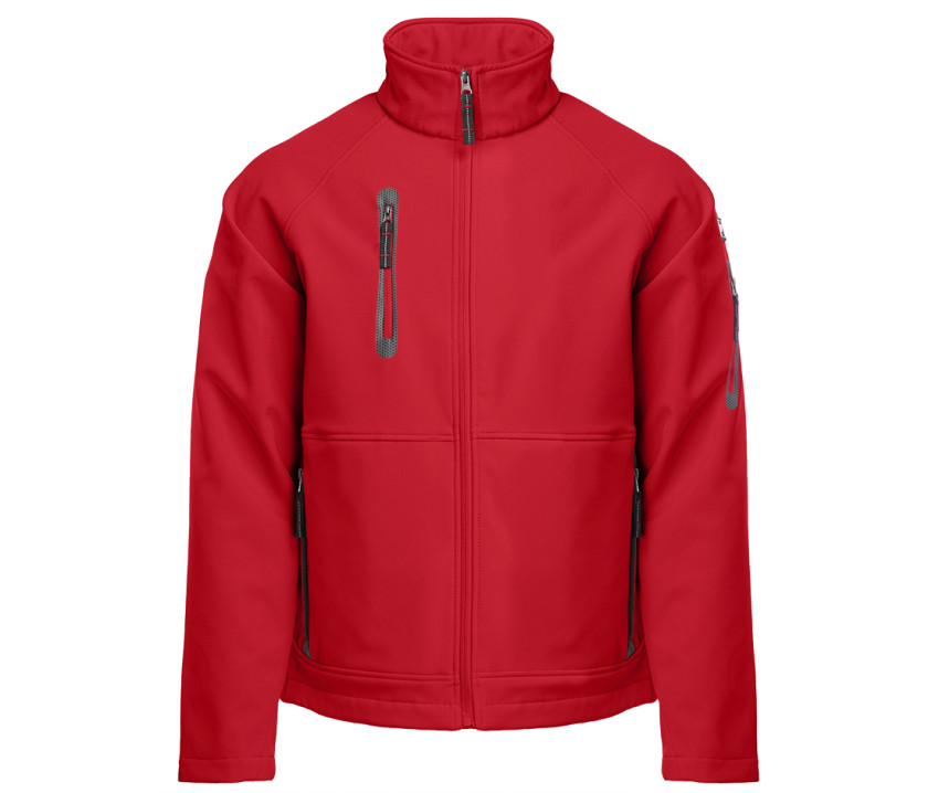 Softshell-Jacke, sehr leicht. 3-schichtiger Stoff mit atmungsaktiver Membran befestigt (800g) und wasserdicht (3000-5000mm). Innenmaterial aus Microfleece. 3 Außentaschen mit Reißverschluss. Gummiband unten mit Stopper. Anliegende Passform. 1 Reißverschlusstasche am Arm. Modell Bodywarmer PK765 Seite 187.