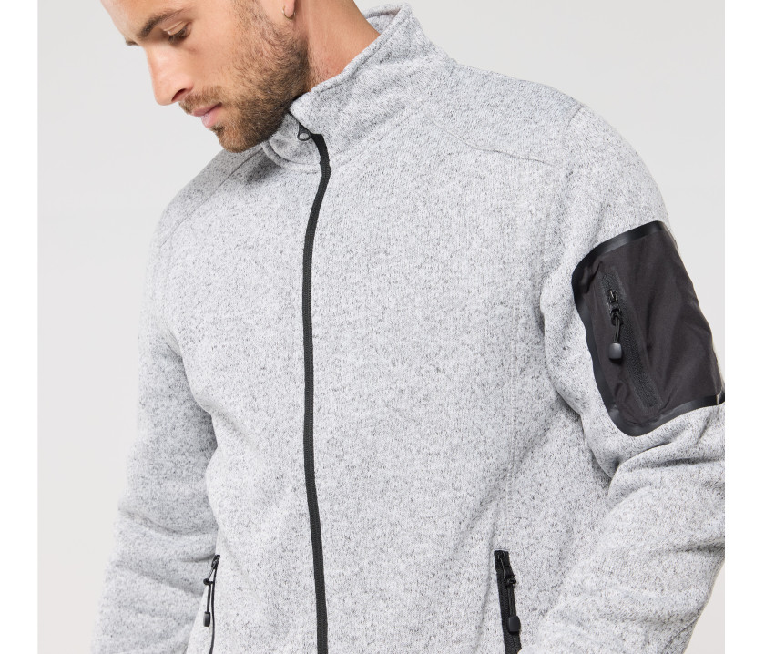 Gestrickte Fleece-Jacke für Herren 300 g/m². Reißverschlusstasche am Arm. 2 Reißverschlusstaschen.