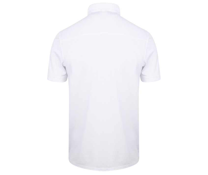 Atmungsaktives Stretch-Polohemd. Piqué. Knopfleiste mit 3 farblich passenden Knöpfen. Ablösbares Etikett. Kragen und Armausschnitte mit Rippenbündchen. Pflegeleicht. Flacher Kragen und verkürzte Kragenspitzen.
