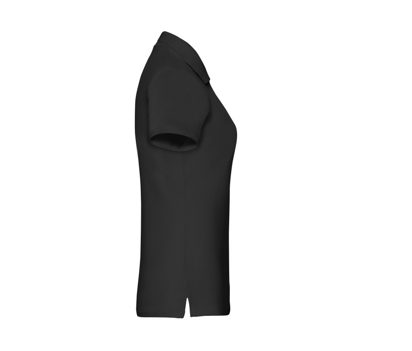 Damen-Polohemd, Baumwolle 180 - Seitliche Nähte. Tailliert. Schmale Knopfleiste mit zwei farblich passenden Knöpfen.