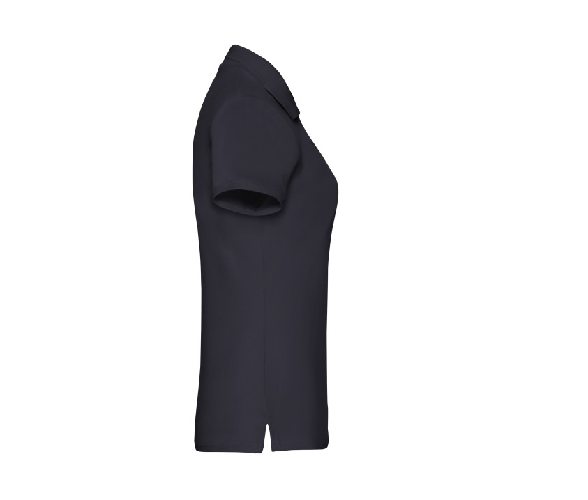 Damen-Polohemd, Baumwolle 180 - Seitliche Nähte. Tailliert. Schmale Knopfleiste mit zwei farblich passenden Knöpfen.