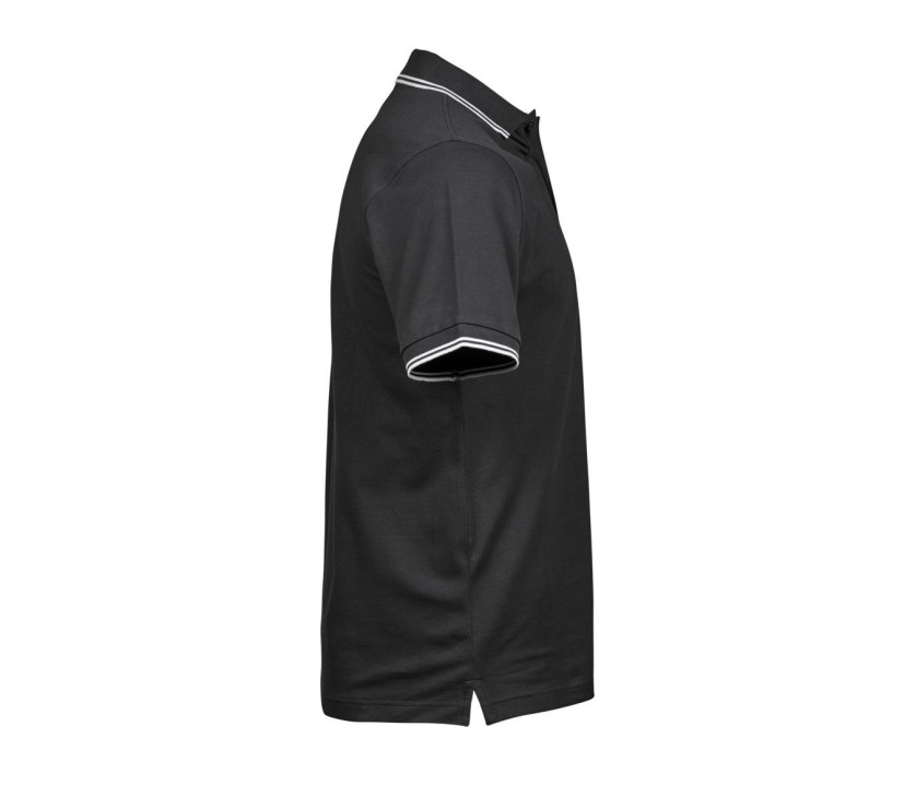 Herren-Polohemd mit Farbkontrasten an Hals und Ärmeln - Mini-Piqué. Kontrastierende Streifen an Kragen und Ärmeln. Kragen mit Rippstrickbündchen aus Lycra.