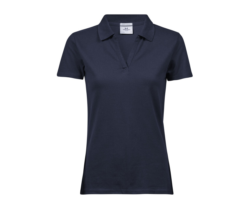 V-Ausschnitt. Mini-Piqué. Anliegende Passform. Flacher Kragen mit Lycra®. Nackenband. Vorgewaschen.