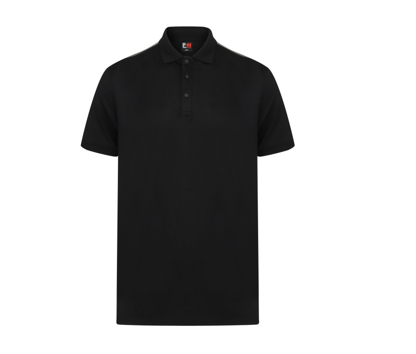 Stretch-Material mit Anti-Feuchtigkeits-Technologie. Anliegende Passform. Kontraststreifen Schultern und Ärmel. Kragen und Armausschnitte mit Rippenbündchen. Gerade Ärmel. Knopfleiste mit 3 Knöpfen, farblich abgestimmt und Kontrastnähte. Ablösbares Etikett.
