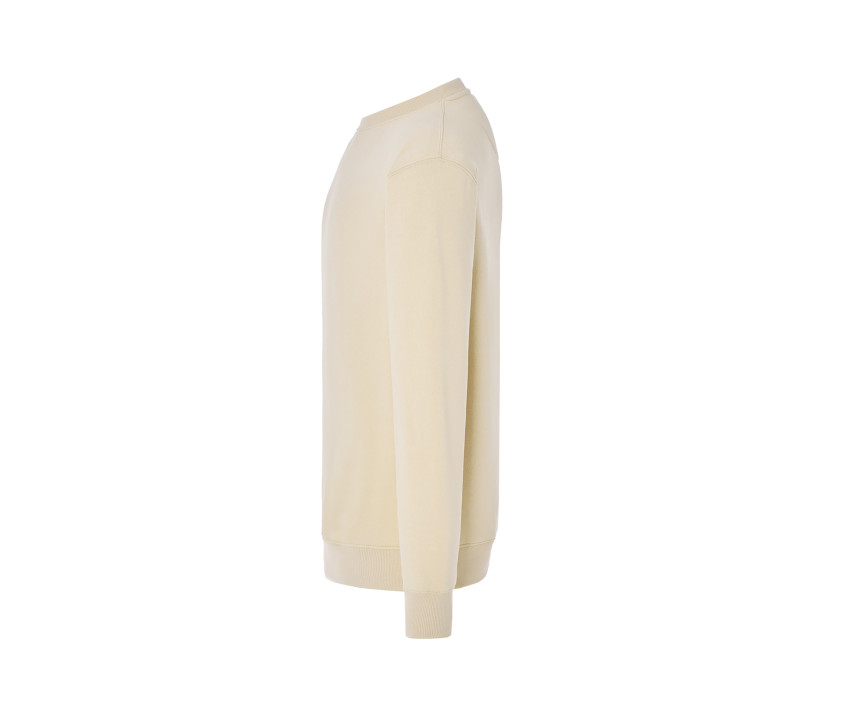 Unisex Sweatshirt - Doppelnaht Kragen, Ärmel und Bund. Rand 1x1-Strick mit Lycra an Kragen, Ärmelbündchen und Bund. Runder Halsausschnitt. Umstellung des Lagerbestands: Polyester/Baumwolle zu Baumwolle/recyceltem Polyester. Innen angeraut.
