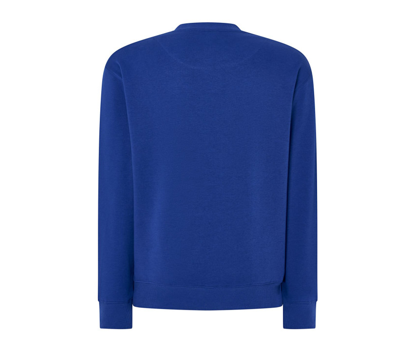 Doppelnaht Kragen, Ärmel und Bund. Rand 1x1-Strick mit Lycra an Kragen, Ärmelbündchen und Bund. Runder Halsausschnitt. Gerade Ärmel. Umstellung des Lagerbestands: Polyester/Baumwolle zu Baumwolle/recyceltem Polyester.