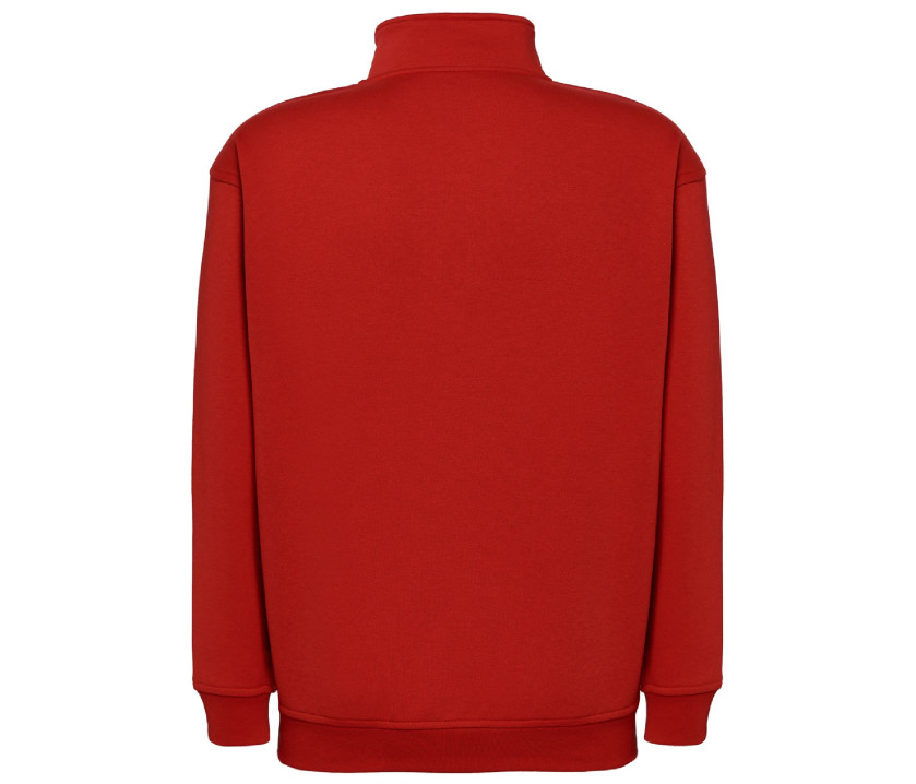 Rand 1x1-Strick mit Lycra an Kragen, Ärmelbündchen und Bund. Stehkragen mit Reißverschluss. Gerade Ärmel.
