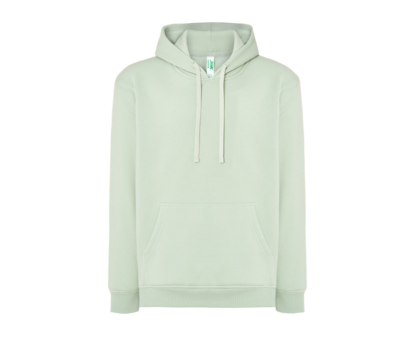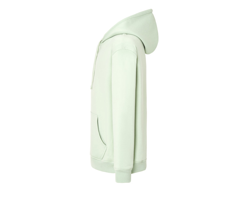 Unisex Kapuzensweatshirt. Zugband in gleicher Farbe. Kängurutasche. 1x1 Rippenbündchen aus Lycra an Ärmel und Bund. Umstellung des Lagerbestands: Polyester/Baumwolle zu Baumwolle/recyceltem Polyester.