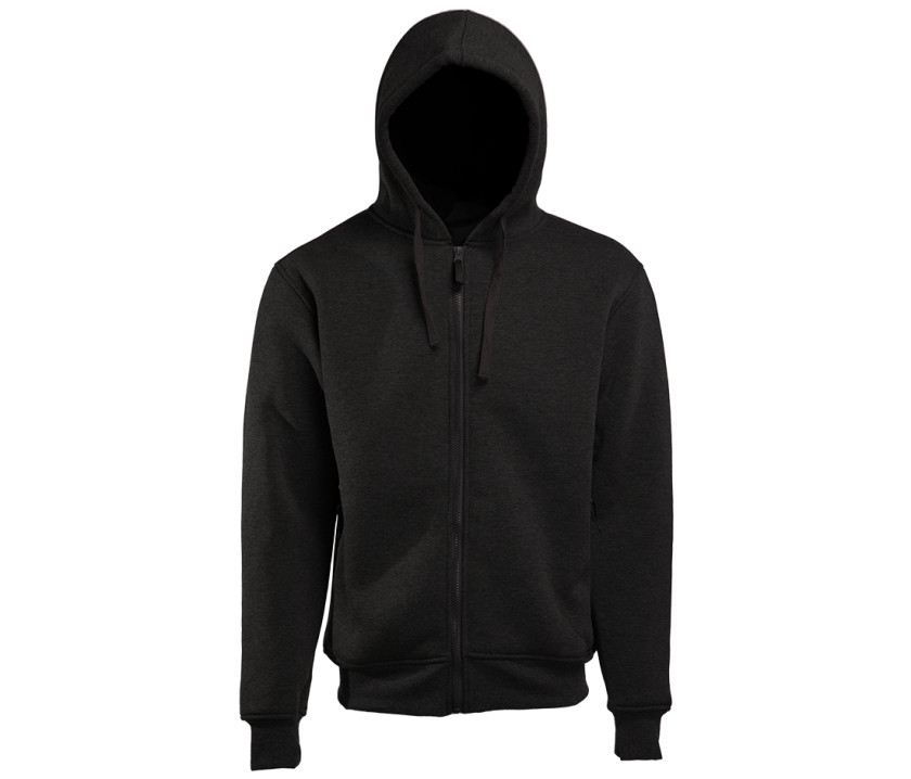 Kapuzensweatshirt durchgehender Reißverschluss. Innenseite Fleece Sherpa 550 g/m². 2 Seitentaschen mit Reißverschluss. Flaches Zugband. Echte Kapuzenjacke.