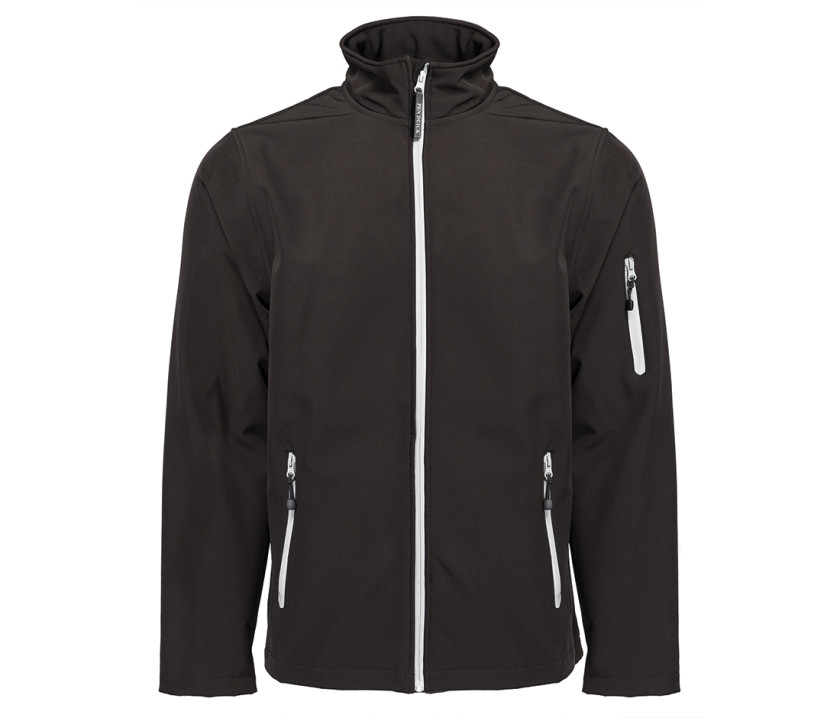 3-lagige Softshelljacke für Herren - 3-lagig. Atmungsaktiv, wasserdicht und winddicht. Innenschutzklappe unter Reißverschluss und Kinnschutz. Lasche Pen Duick abnehmbar am Hauptreißverschluss.