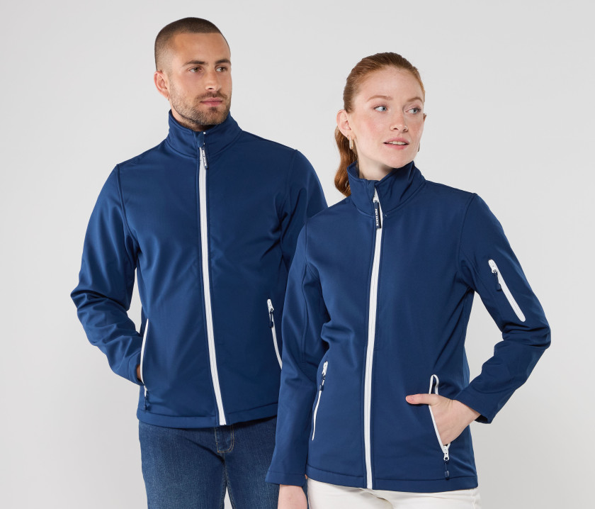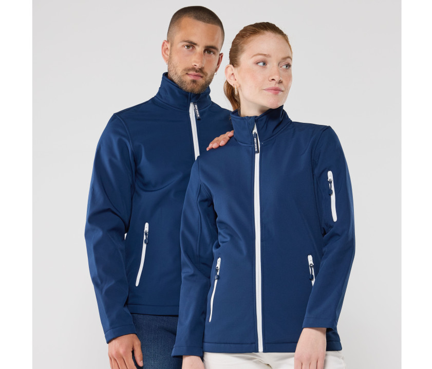 3-lagige Softshelljacke für Damen - 3-lagig. Atmungsaktiv, wasserdicht und winddicht. Innenschutzklappe unter Reißverschluss und Kinnschutz. Lasche Pen Duick abnehmbar am Hauptreißverschluss.