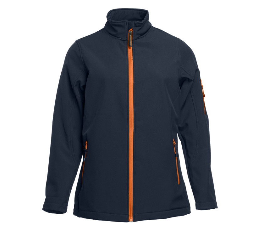 3-lagige Softshelljacke für Damen - 3-lagig. Atmungsaktiv, wasserdicht und winddicht. Innenschutzklappe unter Reißverschluss und Kinnschutz. Lasche Pen Duick abnehmbar am Hauptreißverschluss.