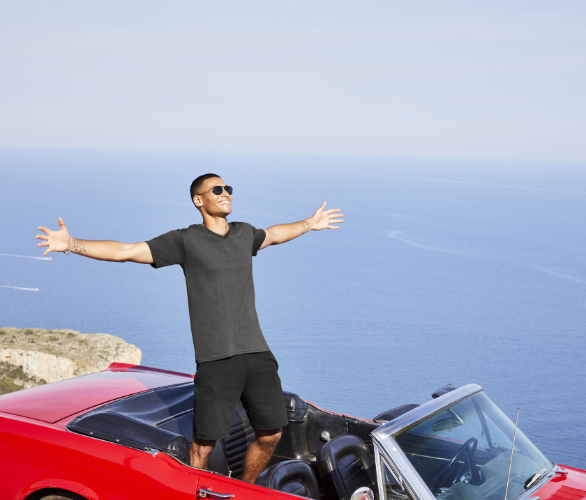 T-Shirt mit V-Ausschnitt - Schlauchschnitt. V-Ausschnitt mit Rippenbündchen aus Baumwolle/Lycra®. Nackenband aus dem gleichen Gewebe am Kragen. Feines Gewebe für einen hochauflösenden Druck.