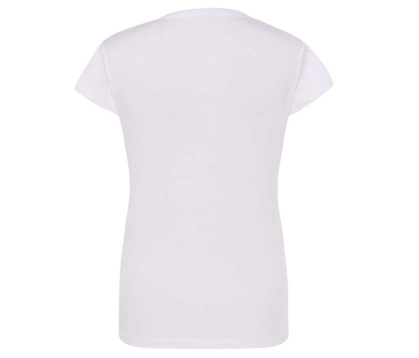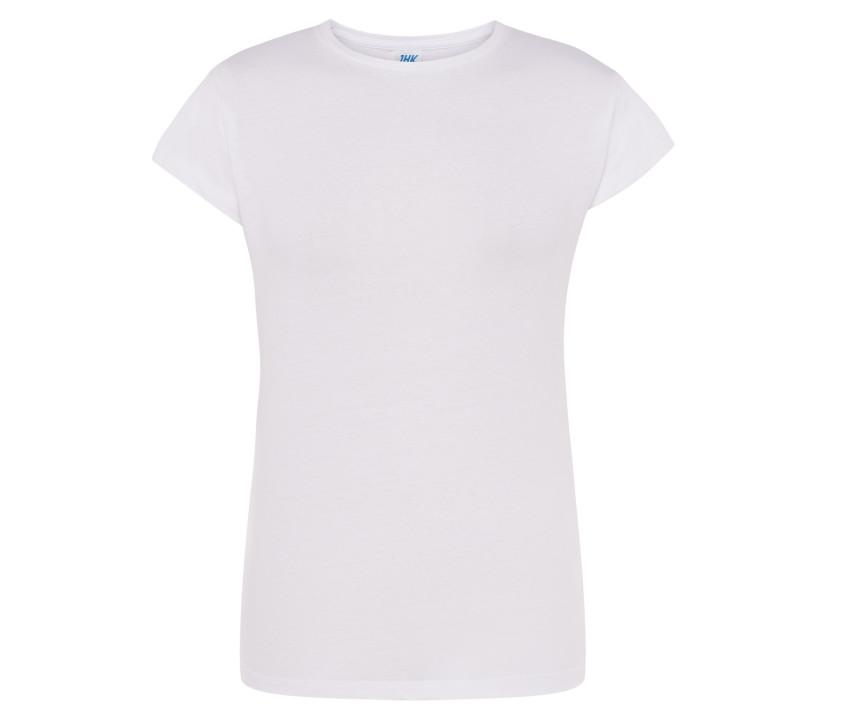 Rundhals-T-Shirt für Damen 155 - Tailliert. Jerseystoff. Doppelte Steppnaht am Hals, Schultern und Bund.