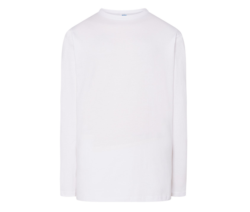 Langärmeliges T-Shirt 160 - Doppelte Steppnaht am Hals, Schultern und Bund. Ablösbares Etikett. Kragen mit Rippenbündchen aus Elastan.