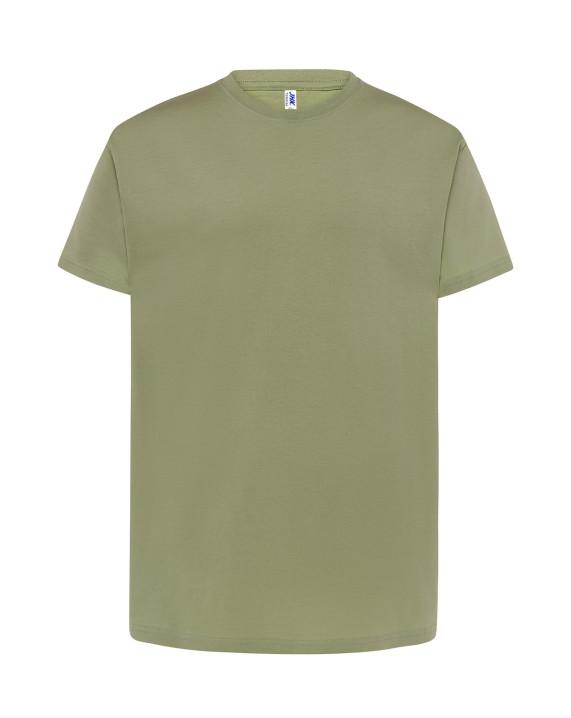 Premium T-Shirt 190 - Schlauchschnitt. Doppelte Steppnaht am Hals, Schultern und Bund. Nacken- und Schulterband.
