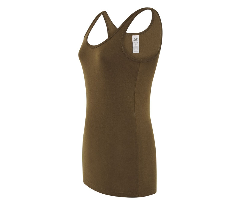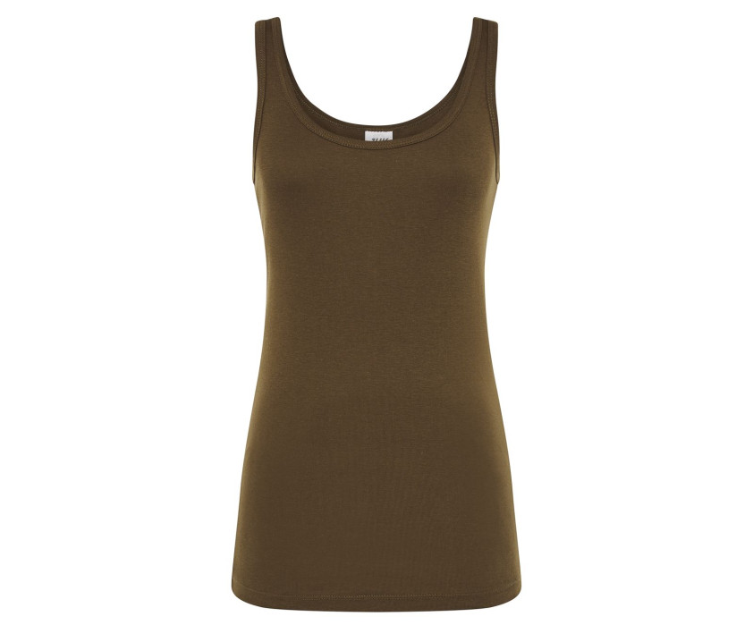 Anliegende Passform. Dünne Träger. Ablösbares Etikett. 1x1-Rippenbündchen.