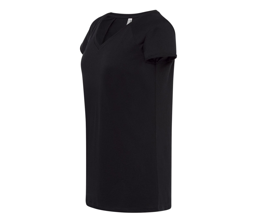 V-Ausschnitt mit 1x1-Rippenbündchen. Aufgerollte Ärmel. Abgerundeter Saum. Enzymwaschung. Ablösbares Etikett.