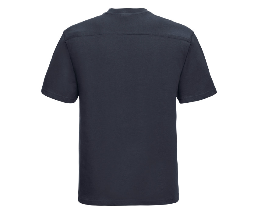 Strapazierfähiges Arbeits-T-Shirt - Klassische Passform. Kragen und Ärmelabschlüsse aus doppeltem Flachstrick. Einsatz halbmondförmig.