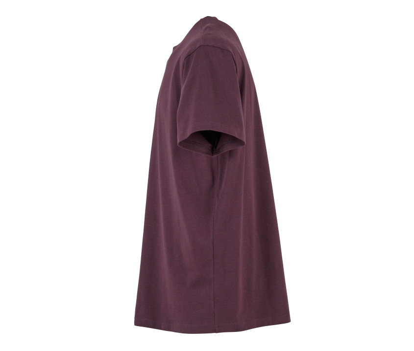 Weites T-Shirt. Nüchterne, klassische Passform. Runder Halsausschnitt. Hängende Schultern. Seitliche Nähte. Doppelnähte an Kragen, Ärmeln und Saum. Ohne Markenetikett, nur mit Größenangabe. Farbe Ready to dye : Die Maße schrumpfen nach dem Färben um eine Größe.