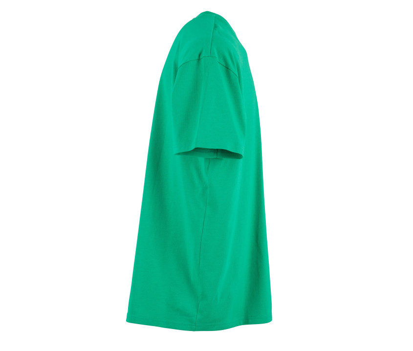 Weites T-Shirt. Nüchterne, klassische Passform. Runder Halsausschnitt. Hängende Schultern. Seitliche Nähte. Doppelnähte an Kragen, Ärmeln und Saum. Ohne Markenetikett, nur mit Größenangabe. Farbe Ready to dye : Die Maße schrumpfen nach dem Färben um eine Größe.