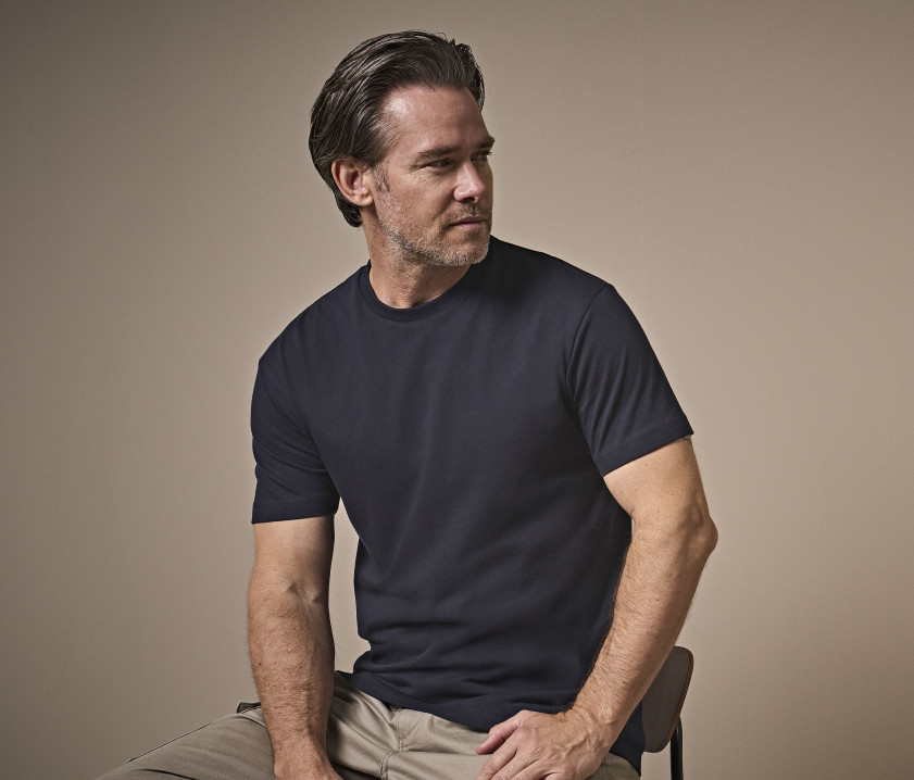Rundhals-T-Shirt für Herren - Anliegende Passform. Größerer Halsausschnitt mit Lycra® gefütterter Halsausschnitt.