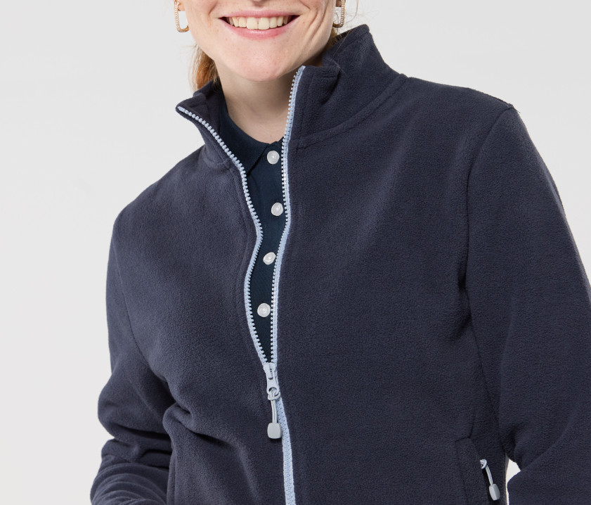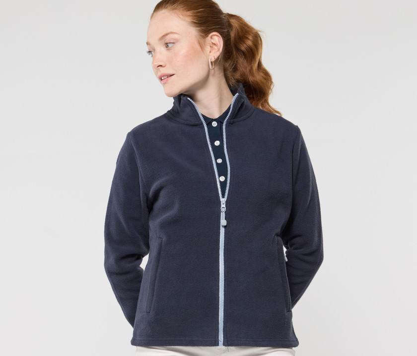 Fleecejacke mit Reißverschluss für Damen - Modische Fleecejacke. 2 Seitentaschen mit Reißverschluss. Hauptreißverschluss und Reißverschlüsse der Taschen in Kontrastfarben.