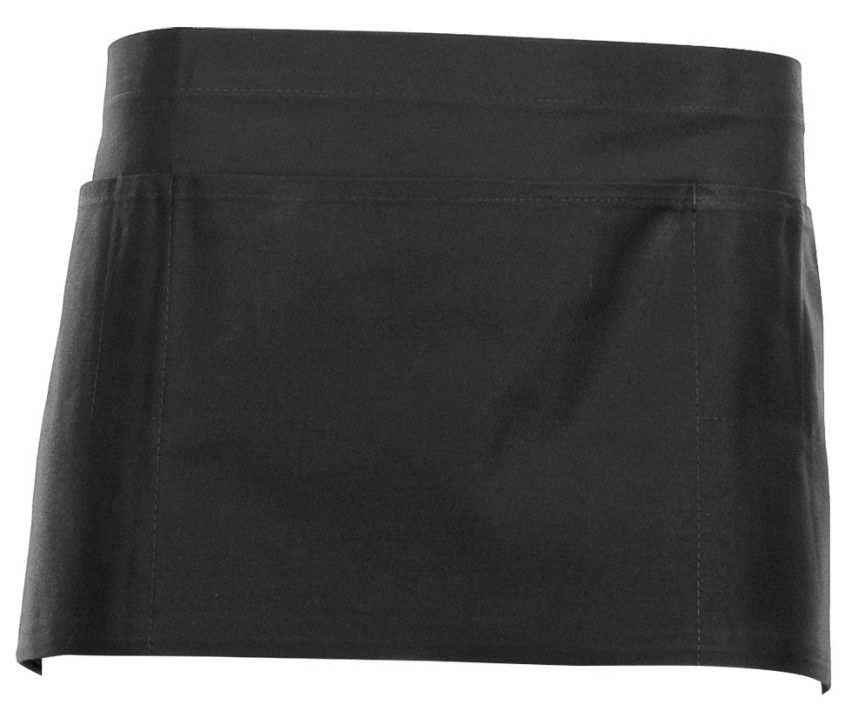 - Kurze Barkeeper-Schürze. Höhe: 25 cm. Breite: 70 cm. Mehrere Taschen. Waschbar bis 60 °C.