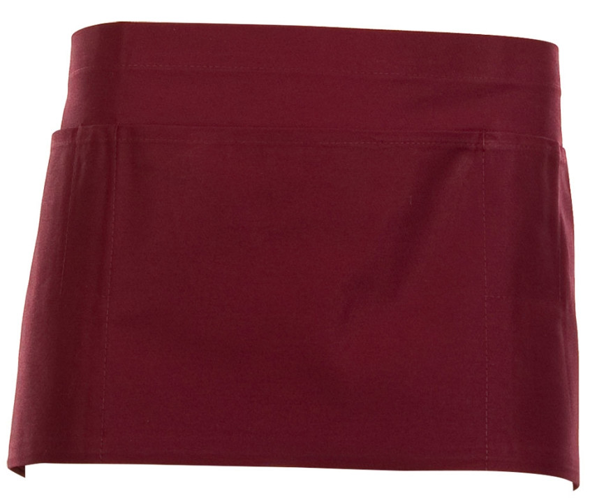 - Kurze Barkeeper-Schürze. Höhe: 25 cm. Breite: 70 cm. Mehrere Taschen. Waschbar bis 60 °C.