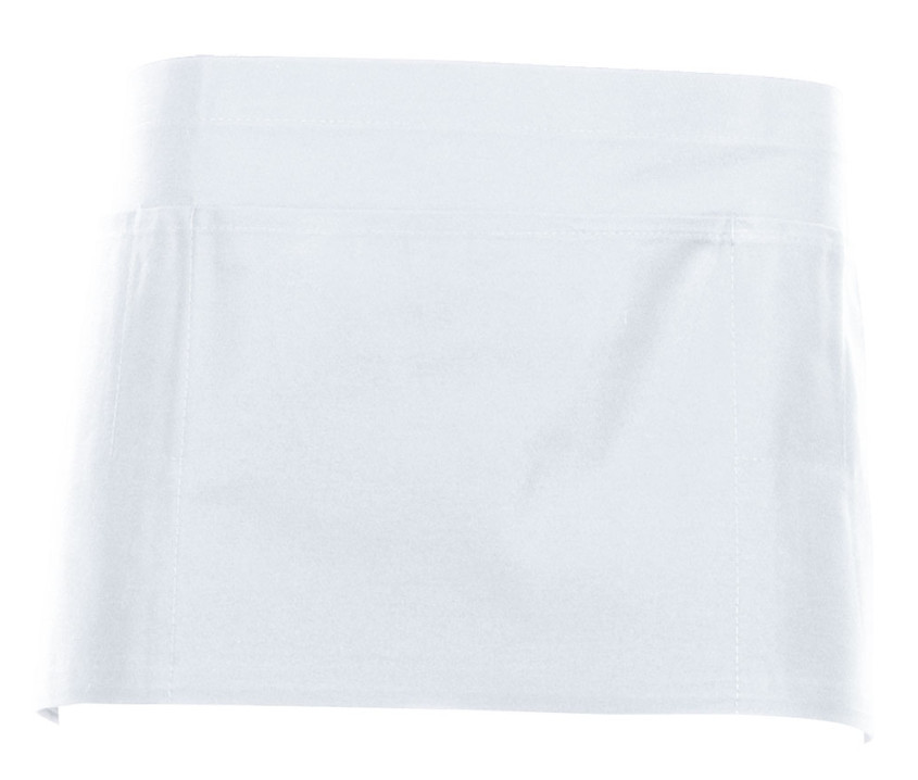 - Kurze Barkeeper-Schürze. Höhe: 25 cm. Breite: 70 cm. Mehrere Taschen. Waschbar bis 60 °C.
