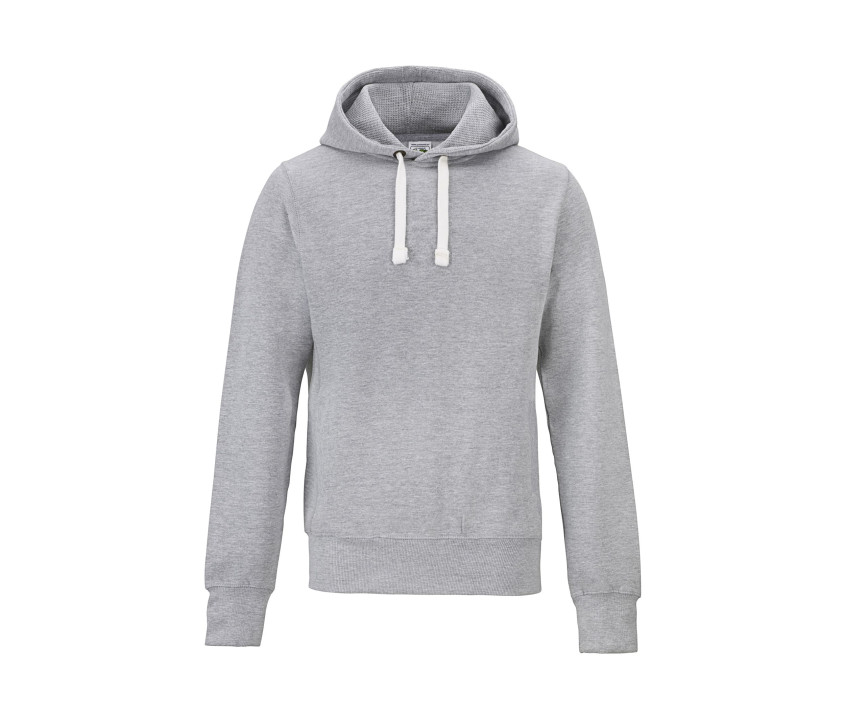 Einsätze an den Seiten. Overlock-Nähte. Taschen an den Seiten. Dicke, weiße Kordeln. Dicke Rippenbündchen an Ärmeln und Bund. Innen gebürstet. Ablösbares Etikett.