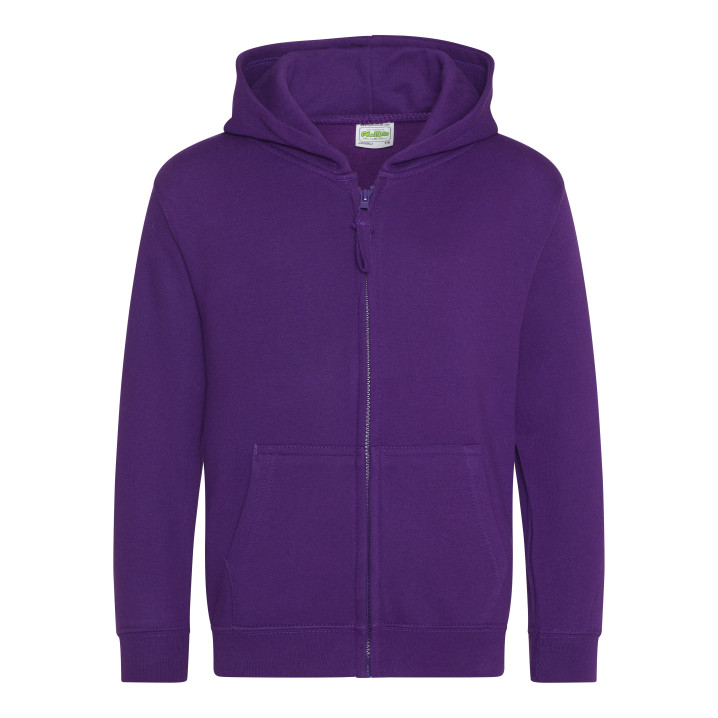 Durchgehender Reißverschluss. Unsichtbarer Reißverschluss. Gefütterte Kapuze. 2 Fronttaschen. Rippenbündchen an Ärmel und Saum. Ablösbares Etikett. Innen gebürstet.