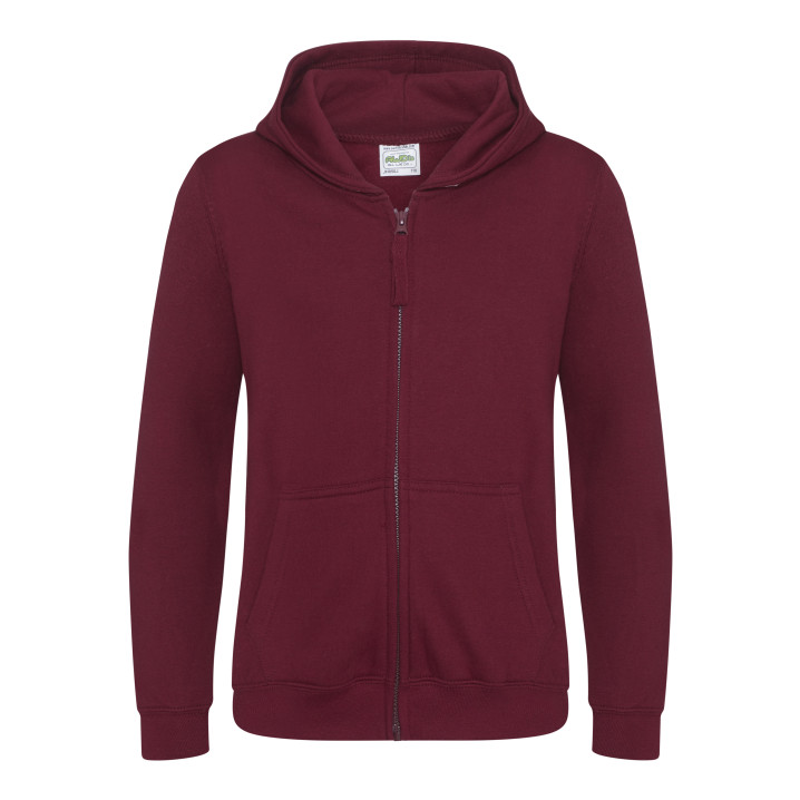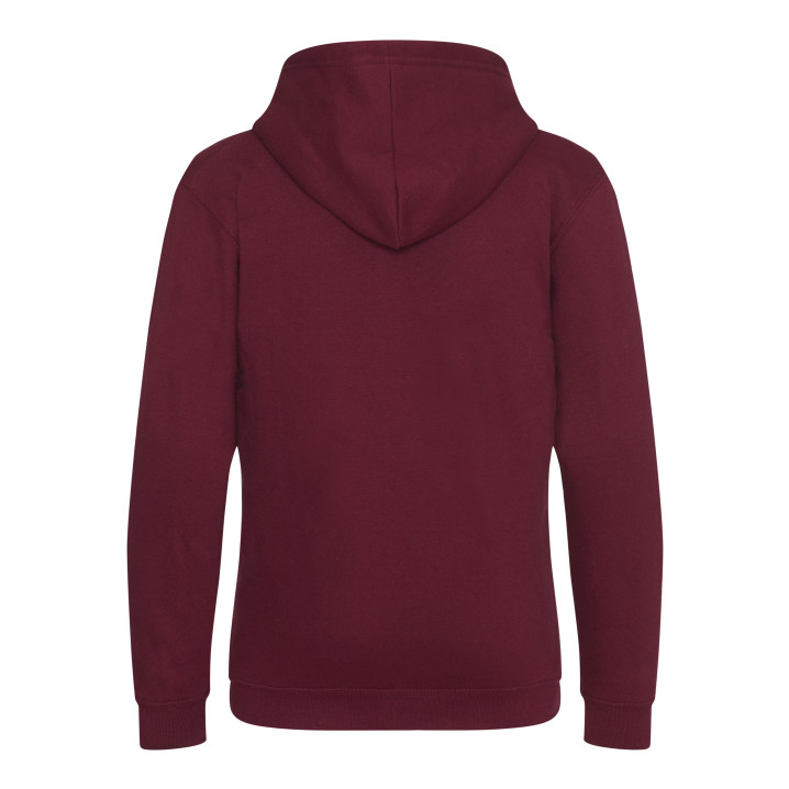 Durchgehender Reißverschluss. Unsichtbarer Reißverschluss. Gefütterte Kapuze. 2 Fronttaschen. Rippenbündchen an Ärmel und Saum. Ablösbares Etikett. Innen gebürstet.